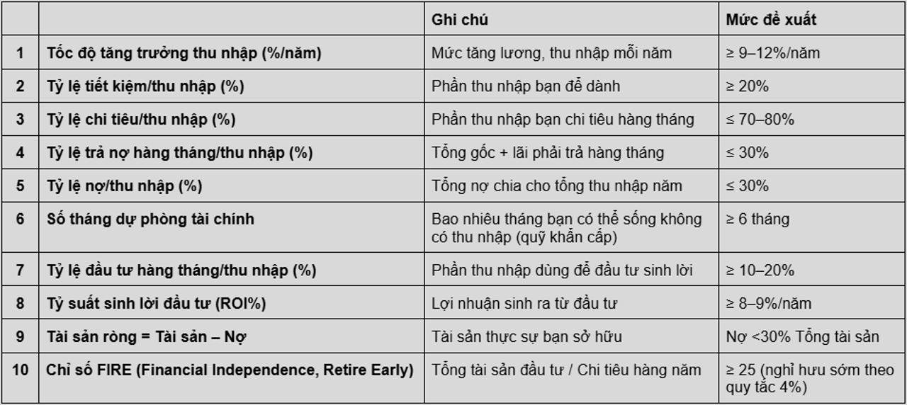 10 Chỉ Số Âm Thầm Quyết Định Tự Do Tài Chính Của Bạn