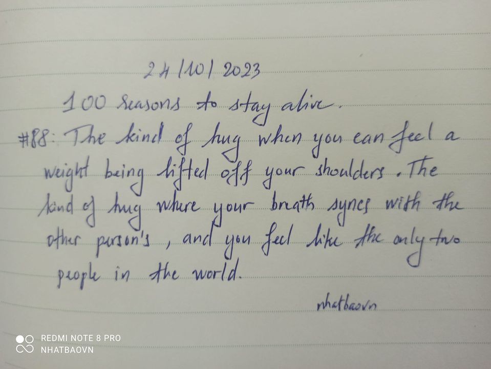 Nếu lý do thứ 87 của Rezy khá ngắn gọn là “nắm tay” thì lý do 88 là lý do dài nhất trong 100 lý do để sống: Một cái ôm khiến bạn thấy...