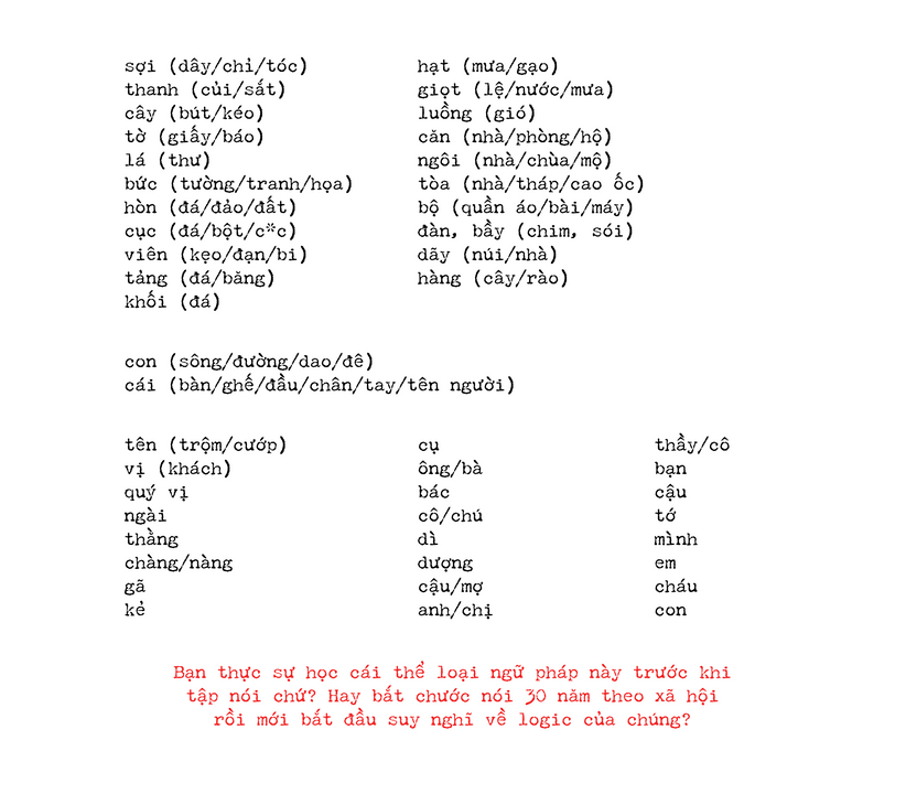 Để thử xem ngôn ngữ của nước khác có thực sự vô lý không, tôi sẽ chê bai chính tiếng mẹ đẻ mình là tiếng Việt, và kèm theo một vài suy nghĩ.