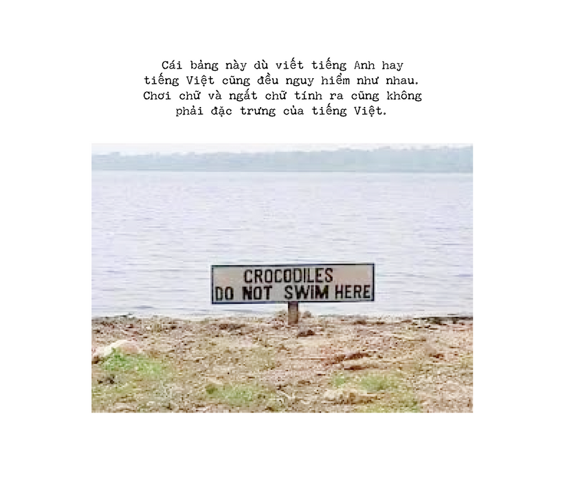 Thông thường, các content rẻ tiền hay dùng “pun” (đồng âm khác nghĩa) để mô tả sự rắc rối của tiếng Việt. Ví dụ: “Đây là nhà tôi (vợ tôi)”, hoặc “Anh ra quầy bán gà tìm em, buồn thay, chỉ còn vài ký ức (ức gà)”. Kỳ thực, “pun” là một trò low-effort (ít đầu tư) cho trẻ con (dad jokes), hoặc làm meme chạy KPI, chứ chẳng phải đặc trưng của ngôn ngữ nào cả: