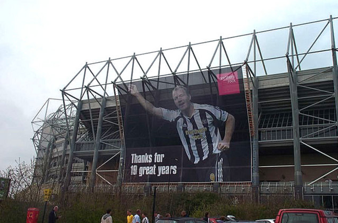 Tháng 4 năm 2006, khi Alan Shearer tuyên bố treo giày, St James' Park đã biến đổi không gian để tri ân người con vĩ đại nhất của mình. Một tấm banner khổng lồ – cao 25 mét, rộng 32 mét được dựng lên, che phủ gần một nửa khán đài Gallowgate End huyền thoại. Hình ảnh Shearer với cánh tay phải giơ cao quen thuộc, đi kèm dòng chữ "Thanks for 10 great years" (Cảm ơn vì 10 năm tuyệt vời), sừng sững như một vị thần hộ mệnh canh giữ thánh địa này. Ông được tôn vinh là "Gallowgate Giant" (Người khổng lồ Gallowgate), một danh xưng khẳng định vị thế vượt lên trên mọi cầu thủ thông thường.
