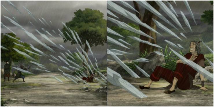 Bạn có biết siêu anh hùng Green Lantern của DC Comics không? Anh chàng có chiếc nhẫn quyền năng có thể vật chất hóa mọi thứ mà anh ấy nghĩ ra trong đầu, vậy liệu các Waterbenders có thể làm được điều đó không? Dĩ nhiên là có rồi. Cùng với trí tưởng tượng phong phú, Waterbenders có thể tạo hình cho băng giá thành bất kì thứ gì, nhất là trong việc tạo ra vũ khí. Xuyên suốt hai loạt phim, chúng ta có thể thấy các ngự nhận tạo ra đạn băng, đĩa băng, mũi lao băng, kiếm băng,…và bất kì thứ gì mang lại hiệu quả tốt nhất trong chiến đấu. Vũ khí càng đáng sợ và nguy hiểm, chúng gắn liền với trạng thái cảm xúc hiện tại của Waterbenders. Chẳng hạn như khi Katara tìm ra gã Ngự Hỏa Sư ngày xưa đã giết chết mẹ mình, cô đã gần như mất kiểm soát và xém chút nữa đã tung đòn chí mạng có thể lấy mạng hắn nếu như khổng kịp lấy lại ý thức của mình.