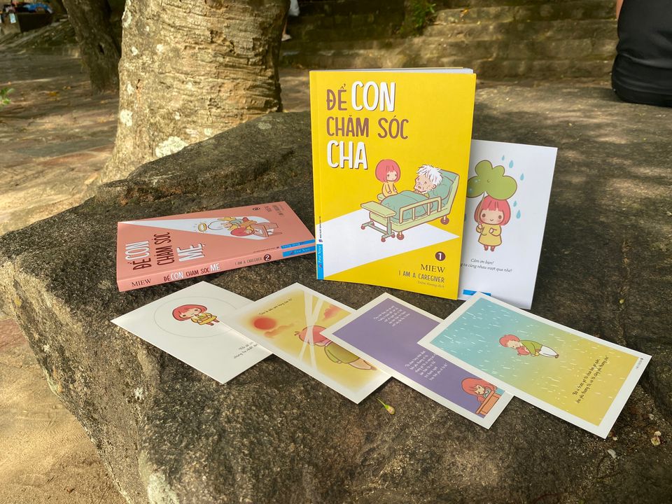 Đây cũng là câu chuyện tác giả Miew kể lại qua bộ sách tranh gồm hai tập: “Để con chăm sóc cha” và “Để con chăm sóc mẹ”, ghi lại những ngày tháng Miew làm người chăm sóc cuối đời cho cha và mẹ cô – một hành trình cảm động, đau thương nhưng cũng ngập tràn tình yêu, sức mạnh và lòng bao dung.