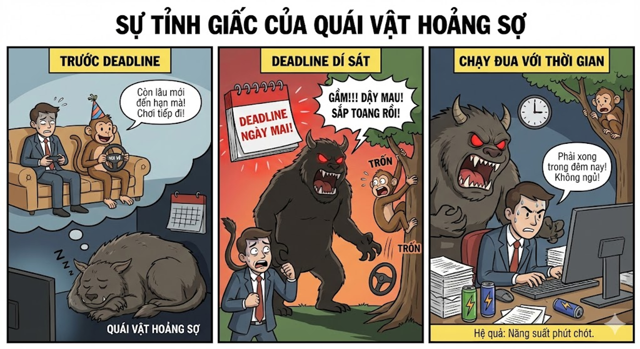Cơ chế: Deadline đến -> Quái Vật thức giấc -> Công việc hoàn thành.