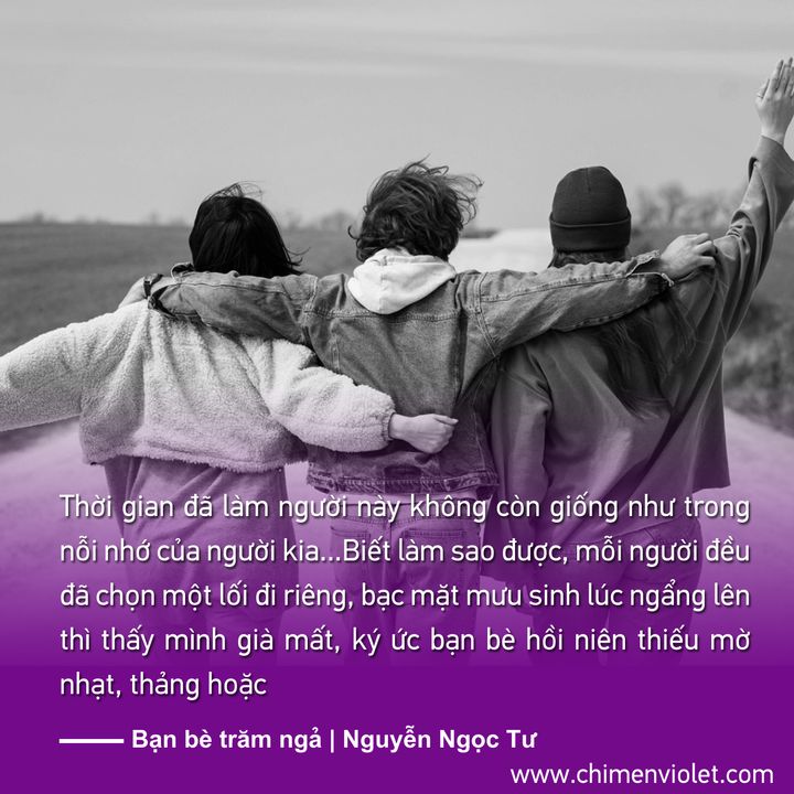 Thời gian đã làm người này không còn giống như trong nỗi nhớ của người kia...Biết làm sao được, mỗi người đều đã chọn một lối đi riêng, bạc mặt mưu sinh lúc ngẩng lên thì thấy mình già mất, ký ức bạn bè hồi niên thiếu mờ nhạt, thảng hoặc