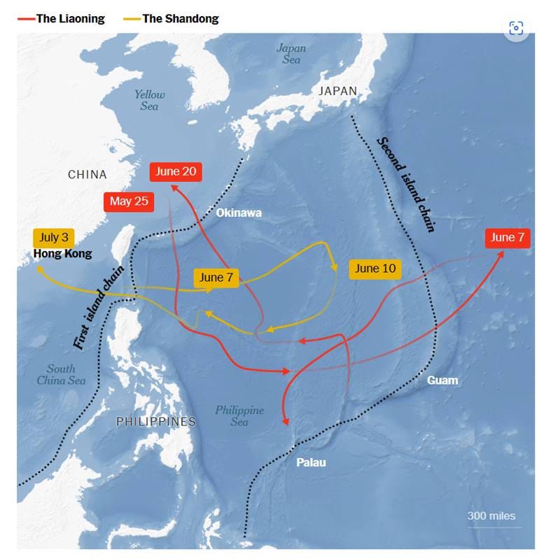 Hoạt động hải quân Trung Quốc gần đây (Nguồn NY. Times)