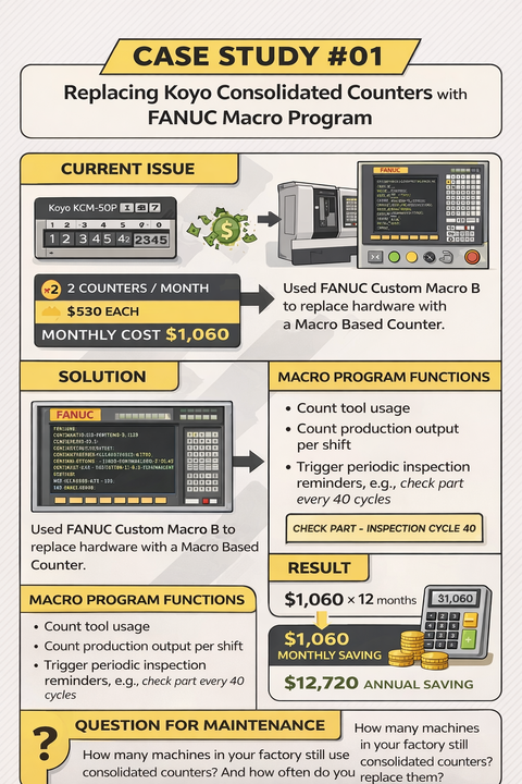 Case Study #01 – Thay thế thiết bị Counter bằng chương trình Macro FANUC Tiết kiệm $1060 / tháng