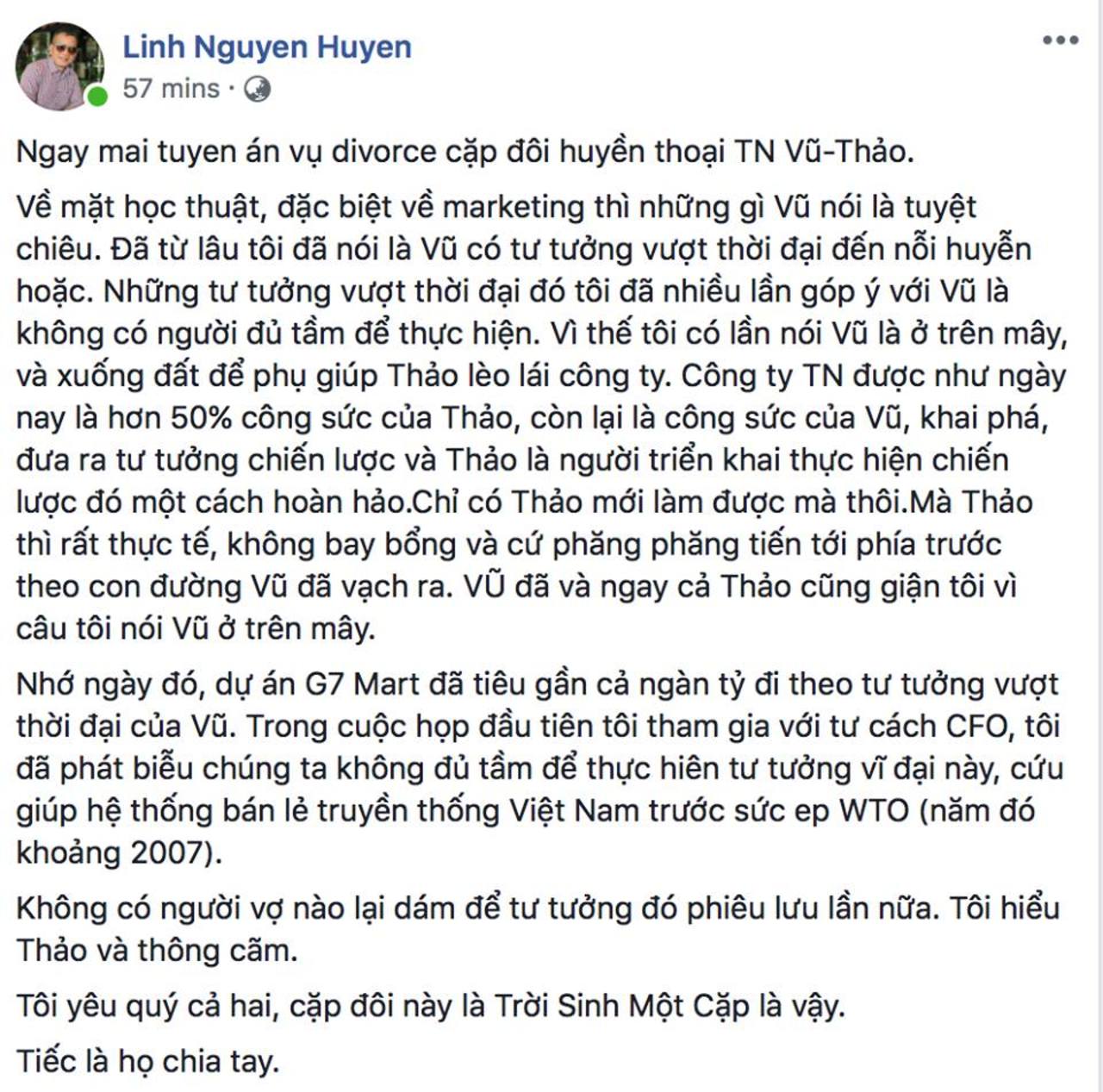 Đây là chia sẻ của tiến sĩ David Linh Nguyen Huyen ( Các bạn có thể search facebook Linh Nguyen Huyen để tìm), theo như status trên thì ông từng là CFO của dự án G7 Mart của Trung Nguyên, và trong status trên có cả comment của chú Nguyễn Đức Sơn từ Plato nên mình khá tin tưởng vào độ xác thực từ status này. Những status khác mà nhiều người chia sẻ, mình chỉ thấy rằng đó là từ những người mà chia sẻ rằng họ nghe được chuyện này từ ai đó, người nào đó từng làm ở Trung Nguyên mà hầu như chưa thấy ai trực tiếp đứng ra nói cả, nên mình vẫn tin vào status này nhiều hơn.