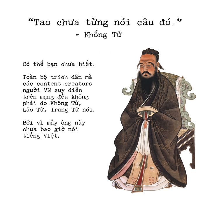 thời này đăng “trí tuệ cổ nhân” lên cái vũ trường MXH, người ta không nghĩ mình là “bậc đại trí”. Mà người ta đoán gia đình mình đang xào xáo, hoặc công ty đang vào giai đoạn Xuân Thu của Khổng Tử — loạn lạc đấu đá. Vì vậy, gọi cổ nhân ra chửi thuê để giải toả nỗi lòng riêng, vừa bôi nhọ họ, vừa vạch áo cho người xem lưng.