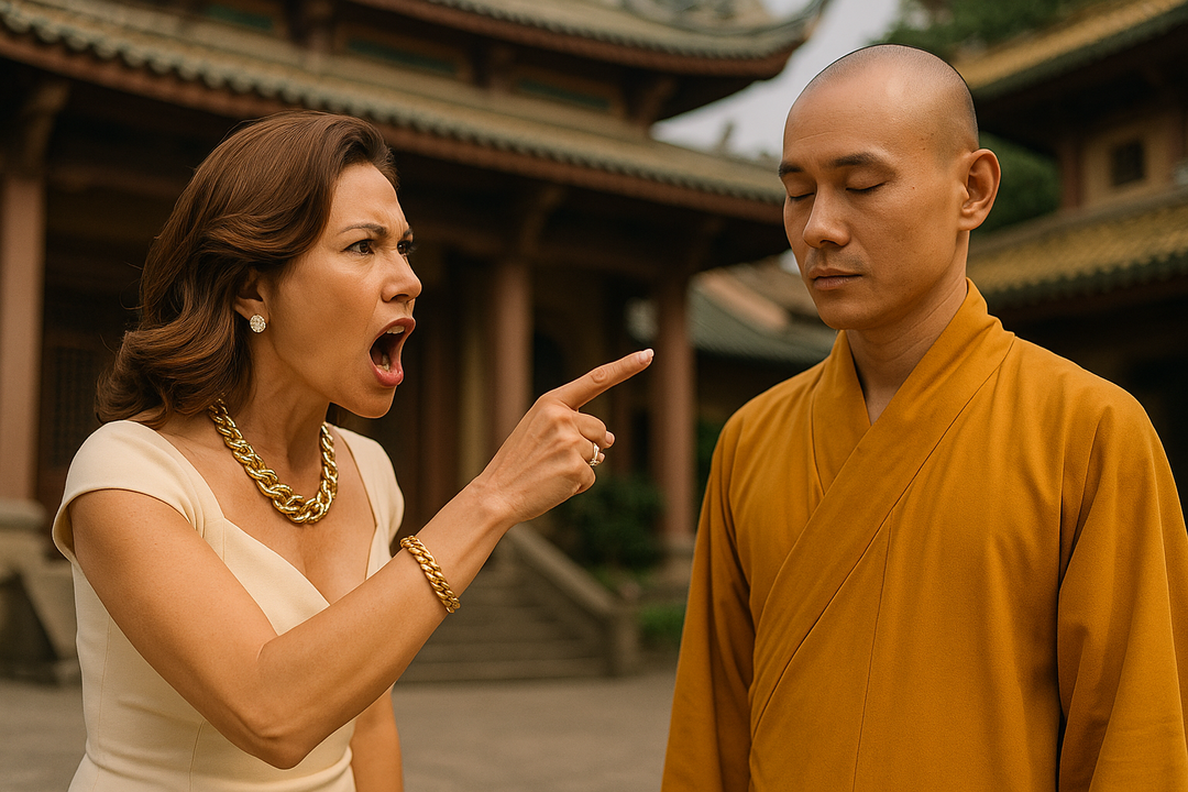 Nó coi trúng một cái clip. Bà kia đang chửi ông sư. Chửi ác liệt. Chửi kiểu muốn đốt sạch chùa luôn. Từng câu, từng chữ như dao phay. Xong bà vừa livestream, còn ngồi mím môi như kiểu “tao nói đúng mà mày làm gì tao được?”