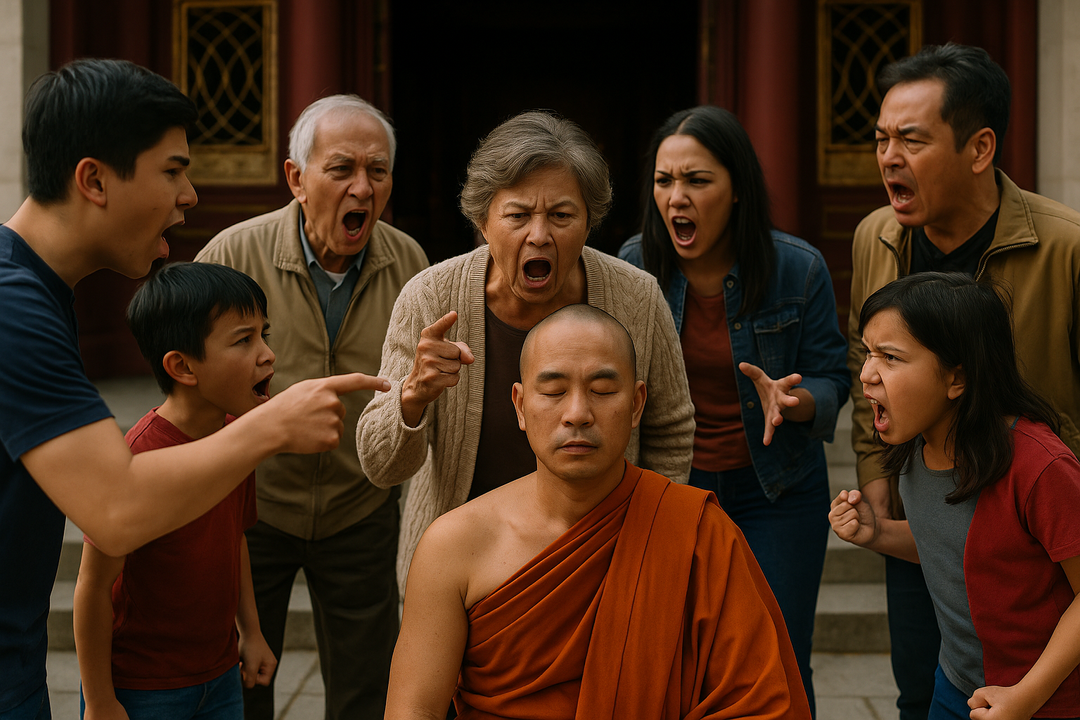 Vậy thì, đừng mong dùng lời để lật lại thế cờ. Hãy dùng cảm xúc ngược lại: Một tiếng chuông chùa giữa phố thị hỗn loạn. Một cảnh ông sư cười với em bé nghèo. Một nén nhang ai đó thắp lặng lẽ cho người không quen.
