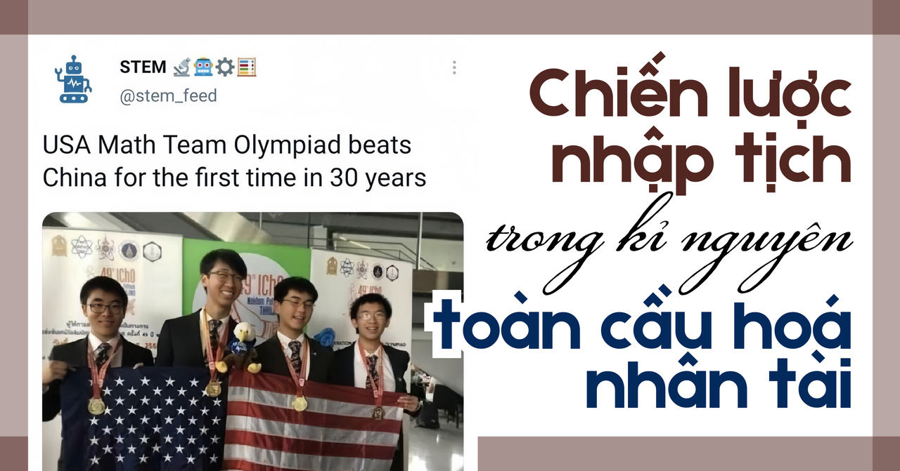 Có lẽ ai cũng từng một lần lướt qua bức ảnh phía trên: dưới lá cờ Hoa Kỳ là những gương mặt trẻ mang đường nét Á Đông, chủ yếu là người gốc Hoa. Đội tuyển Olympic Toán học Mỹ – sau vài thập kỷ lép vế – cuối cùng vượt qua Trung Quốc và đăng quang IMO (International Mathematical Olympiad). Tấm ảnh nhanh chóng được cư dân mạng “nhập kho meme” mỗi khi so kè hai cường quốc. Nhưng phía sau cảm giác hả hê là một câu hỏi âm ỉ: chiến thắng này thuộc về ai? - Nước Mỹ với khả năng thu hút và “định danh” nhân tài toàn cầu? Hay sự thăng hoa của cộng đồng gốc Á trong một hệ sinh thái khác? Đào sâu hơn, khi quốc tịch được vận dụng như chiến lược, từ “đại diện” còn mang ý nghĩa gì?