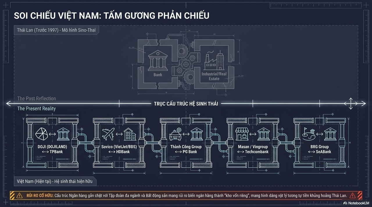 Soi chiếu hình ảnh Việt Nam từ tấm gương liên kết nguy hiểm giữa ngân hàng và hệ sinh thái doanh nghiệp Thái Lan năm 1997