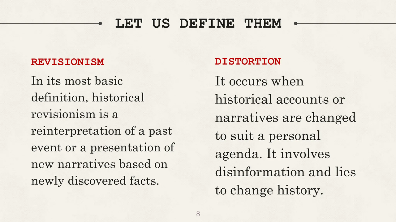 Lịch sử là một cuộc tranh luận không ngừng nhưng bằng chứng phải là trọng tài. Xét lại không phải kẻ thù của lịch sử, nó là cơ chế để lịch sử tiến gần hơn tới sự thật. Tuy nhiên, khi quyền lực nắm quyền kể chuyện, lịch sử có thể bị tái cấu trúc thành công cụ huy động cảm xúc, hợp pháp hóa chính sách, hoặc xây dựng bản sắc quốc gia đơn tuyến.