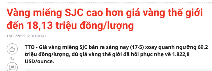 Thậm trí vàng còn không có mà bán, chứng tỏ rằng niềm tin của người Việt Nam mình đối với vàng rất là lớn. Cái này cũng không có gì sai nhưng cái mình quan tâm là: TẠI SAO GIÁ VÀNG VIỆT NAM LẠI CAO SO VỚI GIÁ VÀNG THẾ GIỚI NHIỀU NHƯ THẾ ?