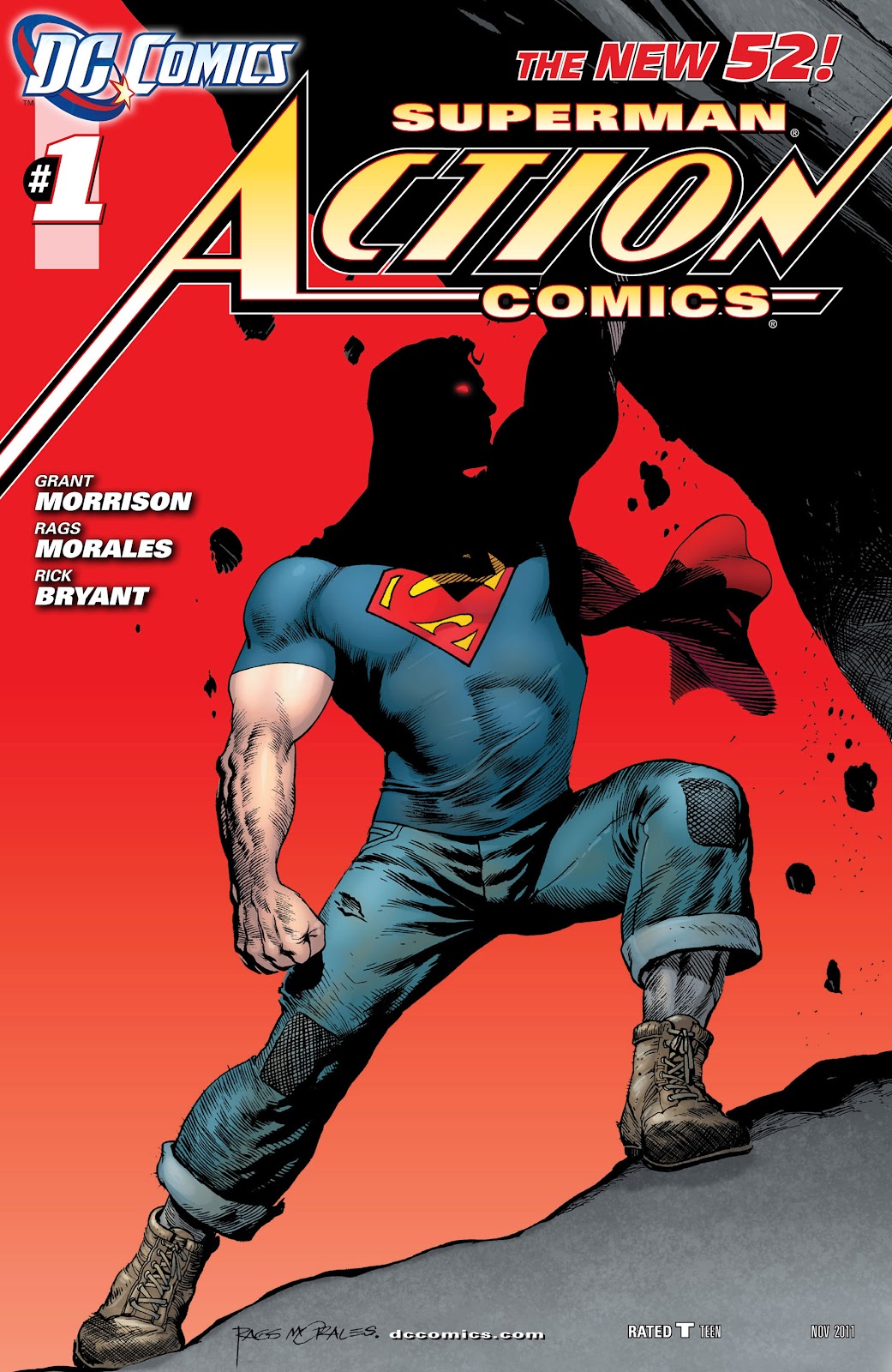Hình: Một ví dụ khác là Action Comics. Việc đánh số lại đầu truyện dài nhất (từ 1938) vào thời kỳ New 52 là một bước đi táo bạo của DC Comics. Công cuộc tái thiết được chọn mặt gửi vàng cho huyền thoại Grant Morrison, trước đó đã giành được ba giải thưởng Eisner cho tác phẩm All-star Superman.