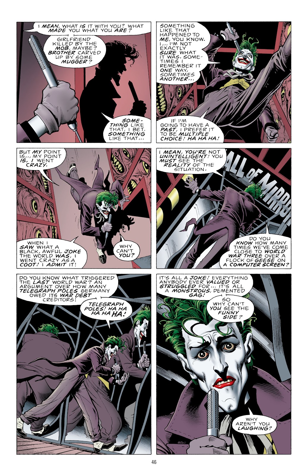 Batman: The Killing Joke là một graphic novel one-shot được sáng tác bởi bộ đôi tác giả - họa sĩ người Anh Alan Moore và Brian Bolland. Nhìn vào tiêu đề, độc giả cũng có thể đoán được phản diện chính trong truyện là Joker. Tuy nhiên, The Killing Joke không hề kể về cuộc đụng độ một mất một còn hay màn đấu trí bất phân thắng bại nào giữa cặp đôi hoàn cảnh này mà chỉ viết nên một ngày rượt đuổi "như bao ngày" giữa hai người họ, khi Joker thoát khỏi Arkham Asylum [một lần nữa] và Batman phải ngăn chặn hắn. Dù đơn giản, đây vẫn là một câu chuyện có tầm ảnh hưởng lớn, định nghĩa tuyệt đối mối quan hệ giữa Hoàng tử hề của giới tội phạm với Kỵ sĩ bóng đêm: "Tại sao hai con người có thể ghét nhau đến nhường ấy trong khi không biết danh tính của nhau?". Không chỉ mổ xẻ tâm lý của hai nhân vật đen tối và phức tạp này, bộ truyện còn cung cấp cho bạn đọc nguồn gốc xuất thân của Joker, một điều chưa hề có tiền lệ, và một tai nạn sẽ thay đổi Barbara Gordon (Batgirl) mãi mãi. Xuất bản lần đầu vào năm 1988, cùng với những đầu truyện đen tối đương thời là Watchmen và Batman: The Dark Knight Returns, Batman: The Killing Joke đã thổi một làn gió mới vào giới comic nói chung và DC Comics nói riêng, phá vỡ định kiến "comic phải tươi sáng và đầy hy vọng", là xúc tác khiến cho "truyện comic trưởng thành".