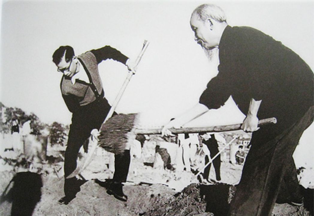 Đây, Hồ Chủ tịch đang đưa tay đỡ chúng ta, chúng ta hãy nâng mình lên!