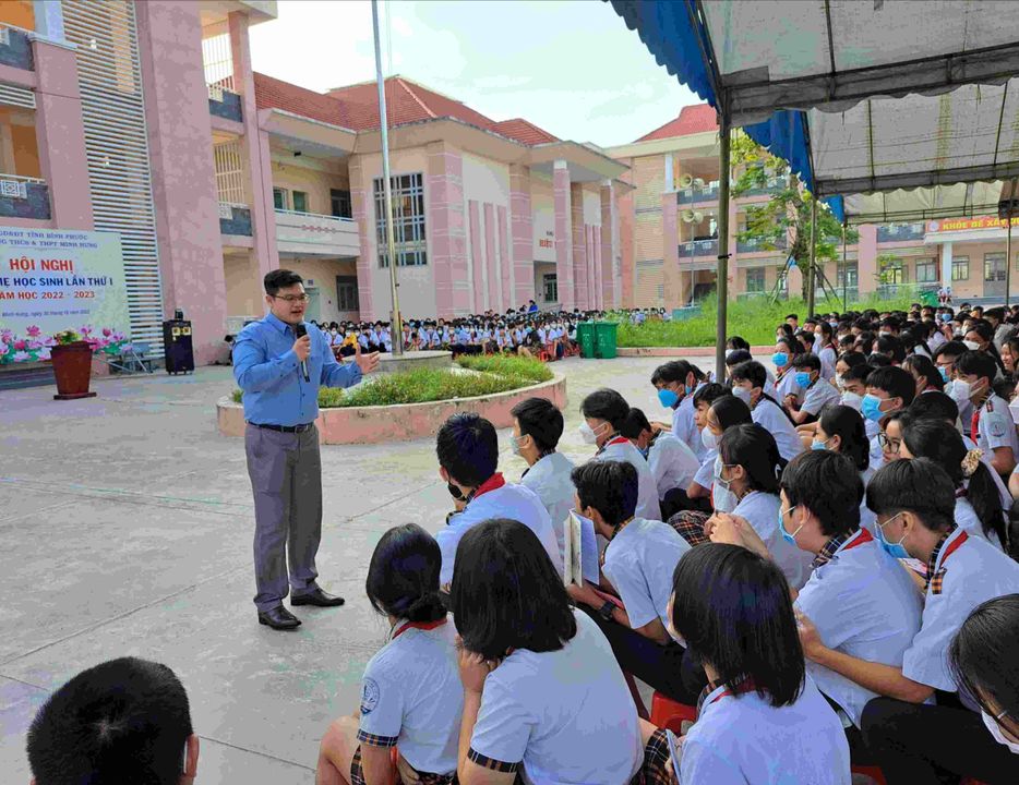 Mai Nguyễn Hoàng Nam đã đưa dự án xây dựng kỹ năng đi qua nhiều điểm trường tại Bình Phước