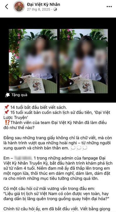 Mấy tháng nay, tôi thấy facebook chạy quảng cáo cuốn ĐẠI VIỆT LƯỢC TRUYỆN của một nữ tác giả rất trẻ. Tôi search gg thì thấy trang Đại Việt Kỳ Nhân giới thiệu về tác giả này: 4 tuổi khám phá lịch sử, 14 tuổi bắt đầu viết sách, 15 tuổi xuất bản cuốn sách lịch sử đầu tiên (là cuốn vừa được nhắc tên ở trên).