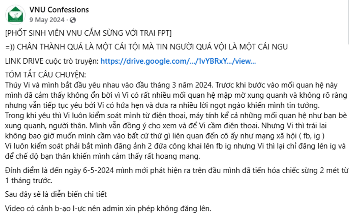 - Em ạ, thằng đó cắm sừng chị, chị cho em xem tin nhắn nó cặp bồ này, em xem mà tránh nó, đừng như chị em ạ.