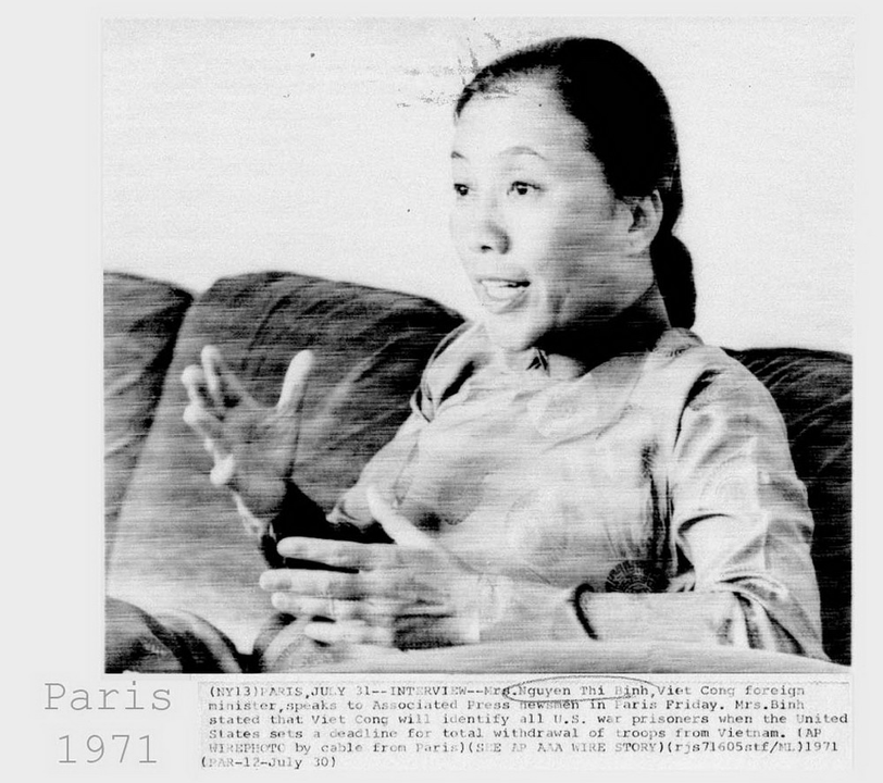 - Chính phủ Cách mạng Lâm thời Cộng hòa miền Nam Việt Nam do bà Nguyễn Thị Bình dẫn đầu