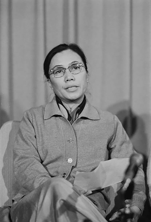 Bà Nguyễn Thị Bình trả lời phỏng vấn tại phòng nghỉ của mình ở Paris ngày 24/10/1972.