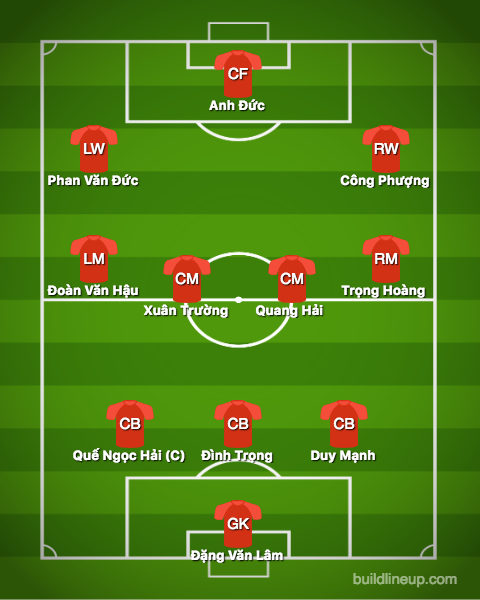Văn Đức và Công Phượng vẫn được cho đá ngay từ đầu và nếu muốn có đột biến, thầy park hoàn toàn có thể rút 1 trong 2 ra (nên là Văn Đức) để cho Hồng Duy được đá đúng cánh trái sở trường. Còn không thì Hồng Duy có thể thay cho Công Phượng. Khi đó, HD có thể trực tiếp đá đúng vị trí Công Phượng để lại hoặc hoán đổi cho Phan Văn Đức ở phía đối diện (tùy thuộc vào diễn biến trận đấu).