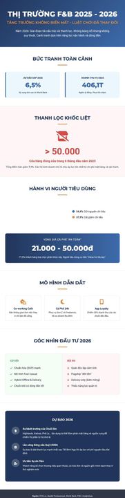 Năm 2026 được nhận định không phải là năm bùng nổ của ngành F&B Việt Nam, nhưng cũng không phải là giai đoạn suy thoái. Thay vào đó, thị trường đang bước vào một pha tái cấu trúc và thanh lọc rõ nét, nơi các quy luật cũ thay đổi và đặt ra những yêu cầu khắt khe về năng lực vận hành cũng như kiểm soát dòng tiền.