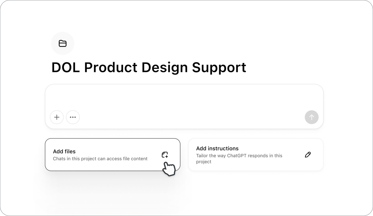 Mục Add files cho phép bạn tải lên các tệp tin để ChatGPT có thể đọc và sử dụng nội dung của chúng nhằm hỗ trợ tốt hơn cho dự án của bạn. Điều này giúp tăng tính tương tác và cho phép AI làm việc với dữ liệu cụ thể hơn thay vì chỉ dựa vào các câu hỏi chung chung.