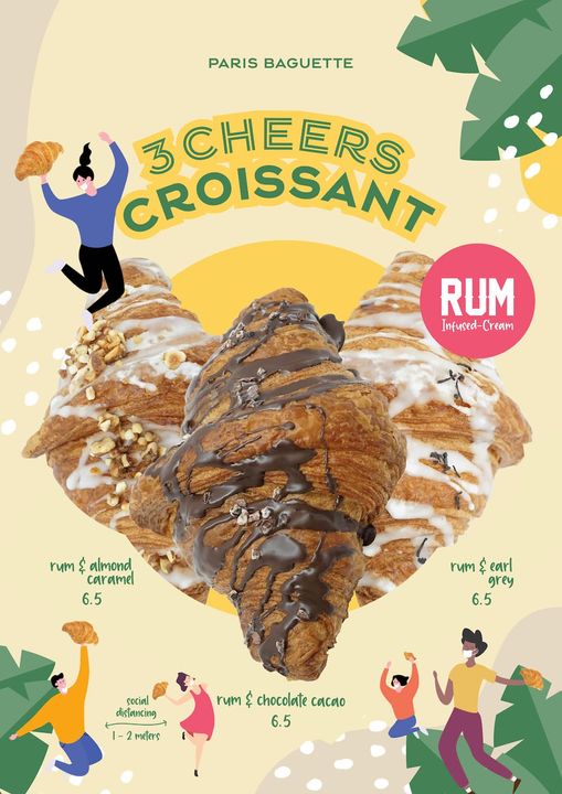 Cố nhiên, Singapore không phải là nơi dễ dàng để bạn hiện thực hóa ý tưởng này. Đảo quốc sư tử vốn nổi tiếng với những quy định nghiêm ngặt về việc tiêu thụ đồ uống có cồn, khiến giá thành bia rượu trở nên đắt đỏ và không dễ tiếp cận. Tin tưởng vào những nhận định và phân tích rõ ràng, họ đã hiện thực hóa ý tưởng bằng chính những chiếc bánh sừng bò lừng danh cùng nhân kem phối trộn với một lượng rất nhỏ rượu Rhum với tên gọi của sản phẩm là Cheers Croissant. Sự kết hợp này tạo nên một phiên bản đầy sáng tạo và trở thành hiện tượng khi mang hương vị vừa quen thuộc vừa mới lạ. Mỗi chiếc bánh không chỉ mang lại sự thích thú cho người ăn mà còn đánh dấu một thành công lớn về mặt kinh doanh khi tình trạng hết hàng diễn ra nhanh chóng tại mọi cửa hàng trên toàn hệ thống.