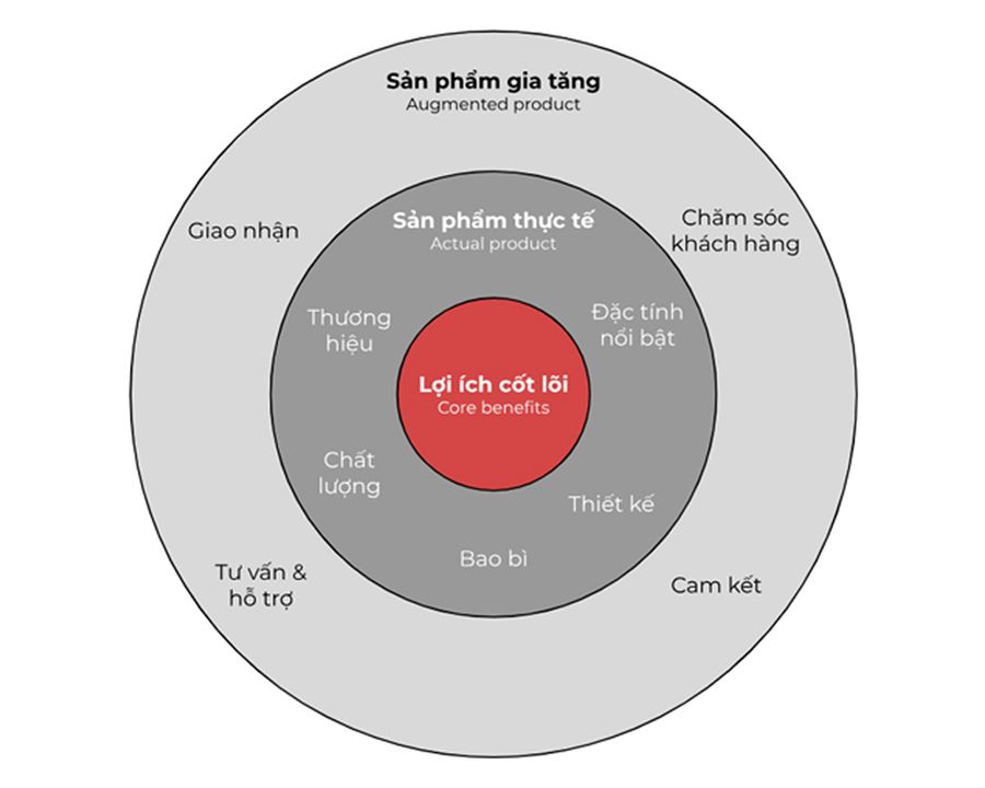 Ở cấp độ cơ bản nhất, giá trị cốt lõi (core benefit) là lời giải cho câu hỏi khách hàng thực sự đang mua gì. Khi thiết kế sản phẩm, chúng ta phải xác định rõ lợi ích và khả năng giải quyết vấn đề mà người dùng đang tìm kiếm. Như việc một người cầm trên tay ly Americano của Starbucks không chỉ tìm kiếm một thức uống giúp tỉnh táo, mà đó còn là cách họ chọn một phong cách sống. Việc sở hữu sản phẩm có hình ảnh "nàng tiên cá" đồng nghĩa với việc họ có được sự chú ý và công nhận từ những người xung quanh. Trong khi đó, tại Highlands Coffee, cà phê lại trở thành một cái gout về sự gặp gỡ thuận tiện và là điểm đến hiện đại của số đông khách hàng đại chúng.
