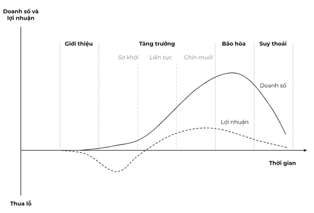 Khi doanh số bắt đầu sụt giảm cũng là lúc sản phẩm bước vào giai đoạn suy thoái. Sự sụt giảm này có thể diễn ra rất nhanh hoặc kéo dài âm ỉ trong một thời gian dài, thường xuất phát từ việc thị hiếu tiêu dùng thay đổi hoặc áp lực cạnh tranh đã đạt đến điểm tới hạn. Trong giai đoạn này, bạn có thể thấy những đơn vị thiếu sức bền vận hành thường chọn cách rút lui khỏi thị trường. Ngược lại, các doanh nghiệp nhạy bén sẽ chủ động thu hẹp phạm vi phục vụ, tối ưu hóa các chi phí không thiết yếu hoặc thực hiện chiến lược tái tung (re-launch) để khôi phục sức sống cho sản phẩm.