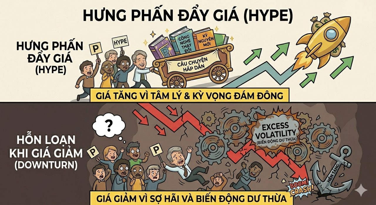 Shiller gọi đây là: ➡️“Excess Volatility” – Biến động quá mức.