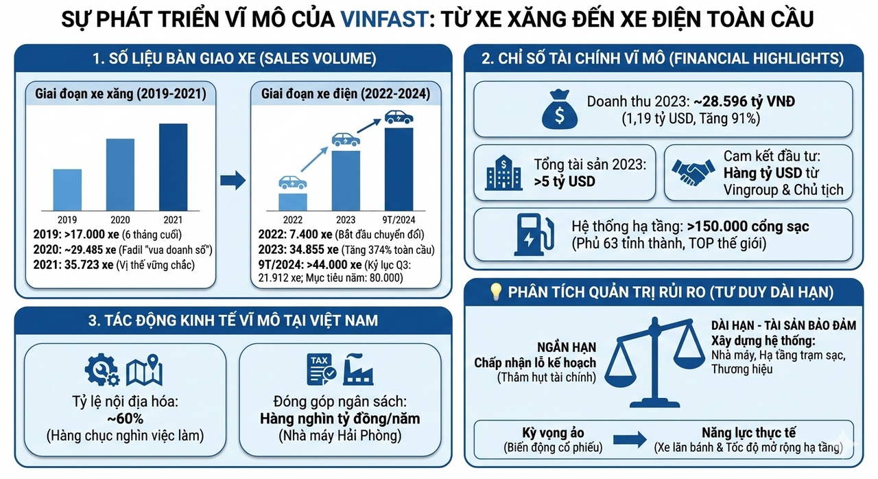 · Biến động tài chính: Giá trị của VinFast lúc này nằm ở tài sản hữu hình (nhà máy rộng 335 ha, dây chuyền triệu đô).