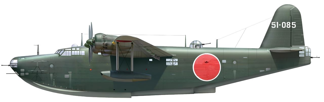 Đội hình H6K2 thuộc một Không đoàn chưa xác định của IJNAF. H6K2 là phiên bản sản xuất đầu tiên của Type 97 được đưa vào phục vụ, sau đó là H6K4, với các buồng súng nhô ra hai bên thân để lắp súng máy Type 92 7,7mm, đồng thời thay tháp pháo lưng bằng vị trí bắn mở. (Record Group 80G-169790, Still Pictures Branch, National Archives and Records Administration – NARA)