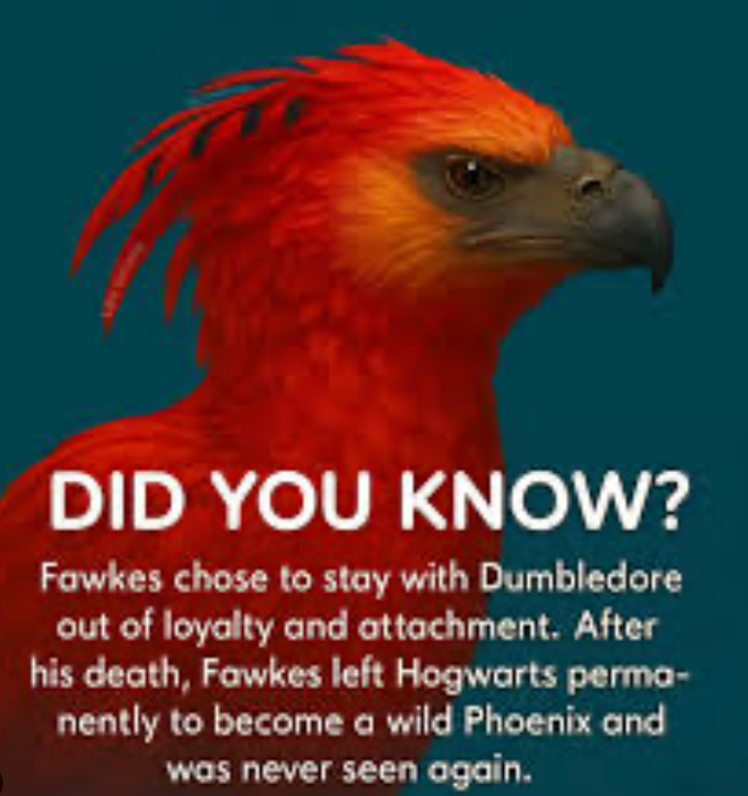 Trong truyện: Con chim đỏ rực của cụ Dumbledore, cháy thành tro rồi tái sinh. Nước mắt của nó là thứ thuốc vạn năng chữa được mọi chất độc.