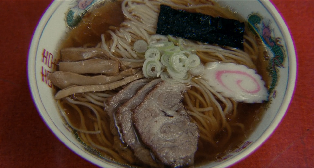 Juzo Itami thực sự “quay” thức ăn với sự tôn kính như đang quay gương mặt người yêu vậy. Từng góc cận đặc tả sợi mì óng ánh lớp mỡ, hơi nước nghi ngút, từng topping như lát thịt heo, măng muối Menma, chả cá Narutomaki, hành lá thái khoanh tròn, một miếng rong biển khô nằm trên… đều được sắp xếp khéo léo, đẹp “chảy nước miếng”.