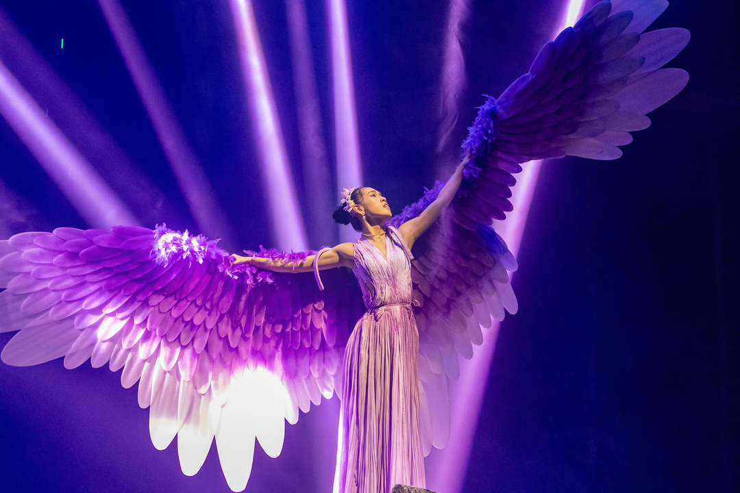 Tình yêu giữa Tiên và Người, với mình, là phép ẩn dụ hoàn hảo cho chính Đà Nẵng: một thành phố giao hòa giữa quá khứ – những di sản văn hóa phong phú – và hiện tại – sự bứt phá, đổi mới đầy táo bạo. Những hình ảnh như cây đa ngàn năm, vọoc chà vá chân nâu, hay hoa Thàn Mát, làng chài ven biển… không chỉ là điểm nhấn sân khấu mà còn là những thông điệp sinh thái, là lời nhắc nhớ về bản sắc không thể tách rời của Đà Nẵng. Áo dài và khung dệt – cũng vốn gắn liền với hình ảnh người phụ nữ Việt xưa – được thể hiện trong không gian sân khấu đầy ánh sáng, âm nhạc điện tử – khiến quá khứ và hiện đại gặp nhau không gượng ép, mà chan hòa vô cùng tận.
