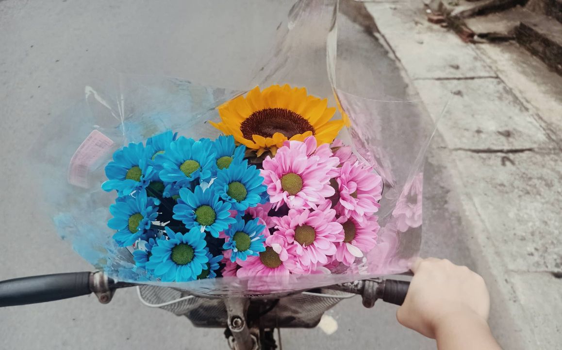 Hôm nay, trời trong, chiếc xe đạp cũ, Linh, lại đi mua hoa.