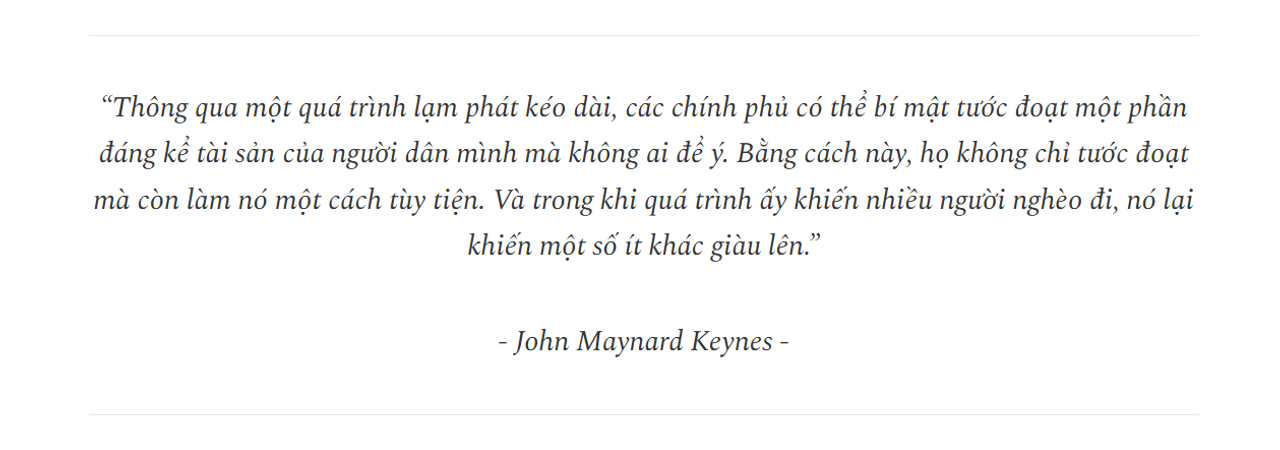 Thuế bắt buộc là một chuyện, vì ít ra người dân còn nhìn thấy được nó là gì và có thể phản ứng lại nếu cần thiết. Nhưng việc tài sản tiết kiệm được bị mất giá một cách ép buộc, tùy tiện và mờ ám lại là một chuyện hoàn toàn khác. Năng lực mới này đã tạo nên một sự chuyển dịch quyền lực to lớn. Cũng giống như khi của cải chuyển dần sang tay những kẻ có thể sản xuất ra tiền với chi phí thấp, thì giờ đây nó đã mang trên mình một màu áo mới: của cải chuyển dần từ những người chỉ sử dụng tiền sang những kẻ nắm quyền kiểm soát chúng.