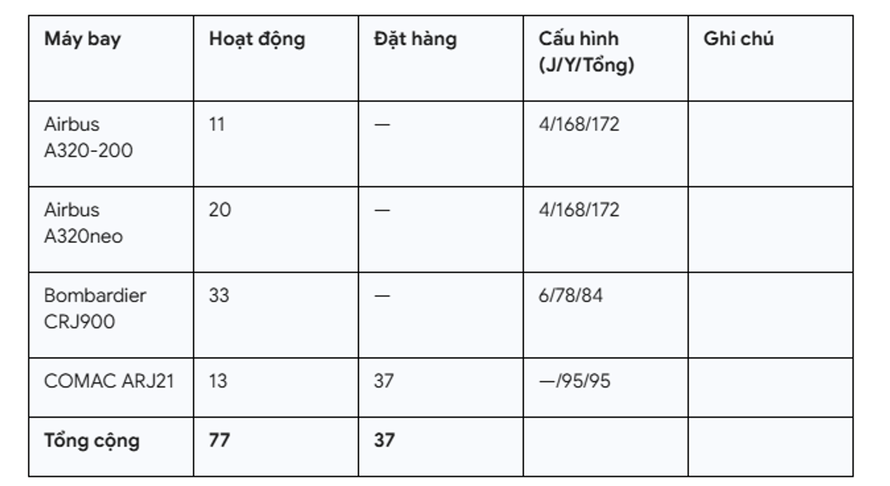 + Năm 2020: Đặt hàng 50 chiếc ARJ21 và 50 chiếc [[COMAC C919]] (có thể chuyển đổi).