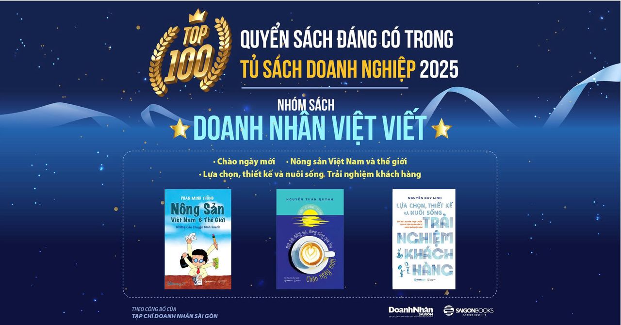 Đặc biệt, bốn tác phẩm này đều do doanh nhân Việt Nam chấp bút và được vinh danh trong Top 10 cuốn sách xuất sắc nhất do doanh nhân Việt viết năm 2025. Từ lời nhắn gửi giản dị của Nguyễn Tuấn Quỳnh trong Chào ngày mới, đến chia sẻ thực tế của Phan Minh Thông về hành trình đưa nông sản Việt ra thế giới – những câu chuyện ấy khẳng định rằng: doanh nhân Việt không chỉ kiến tạo giá trị vật chất, mà còn để lại di sản tri thức cho thế hệ mai sau.