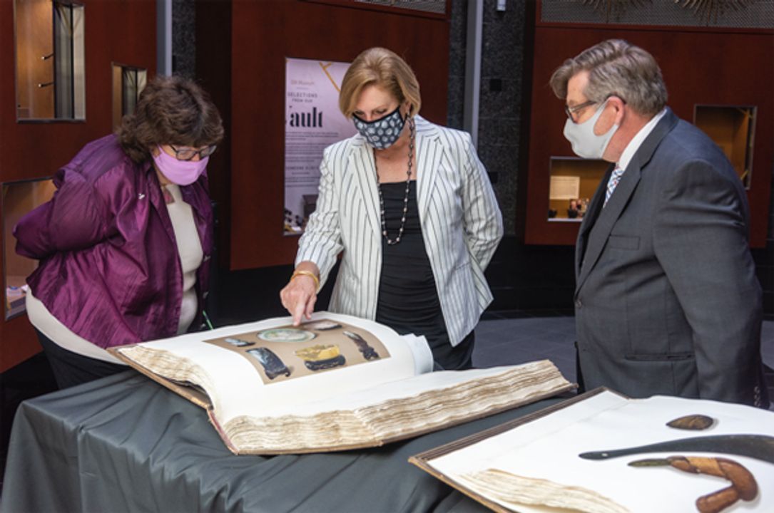 E. Billie Hughes của Lotus Gemology đang xem xét một trong hai tập sách đồ sộ thuộc bộ sưu tập The Bishop Collection: Investigations and Studies in Jade tại thư viện của Bảo tàng Field ở Chicago. Ảnh: Gretchen Rings/Bảo tàng Field Chicago.
