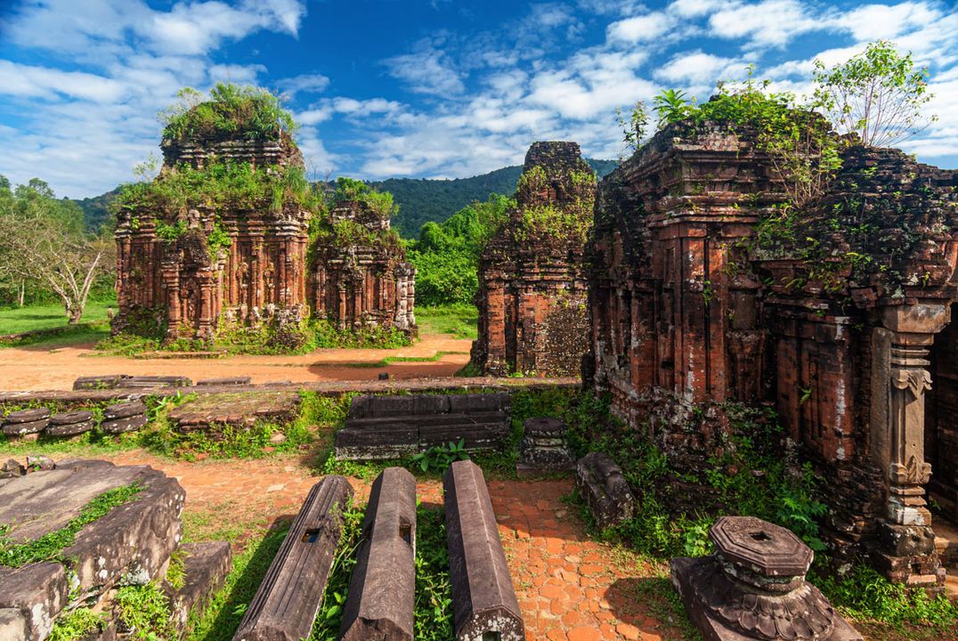 Dấu tích của nền văn minh Chămpa tại Việt Nam hiện nay chủ yếu tập trung dọc theo miền Trung Việt Nam, từ Quảng Bình đến Bình Thuận, được thể hiện rõ nét qua các cụm đền tháp bằng gạch nung và các hiện vật điêu khắc.