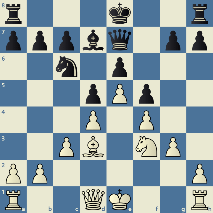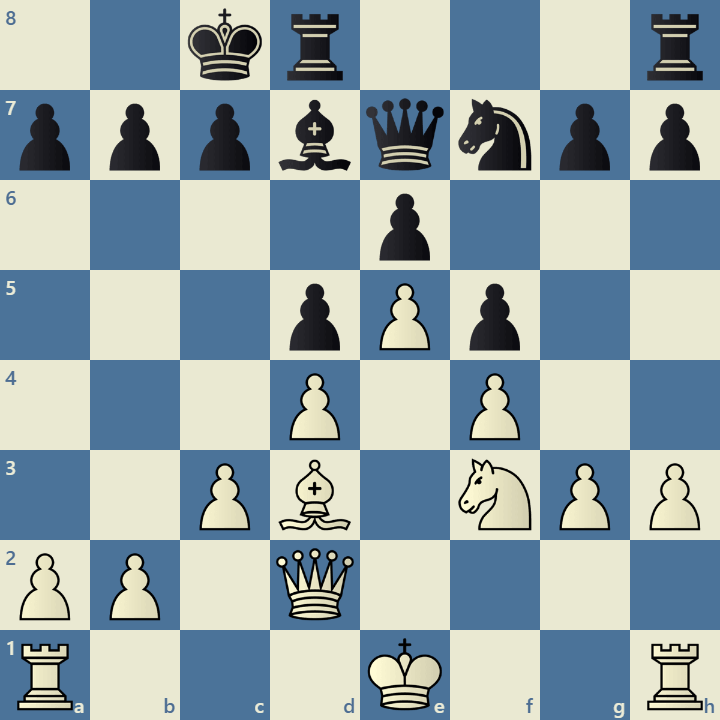 1. Qe2 Nd8 2. h3 Nf7 3. Qd2 O-O-O
