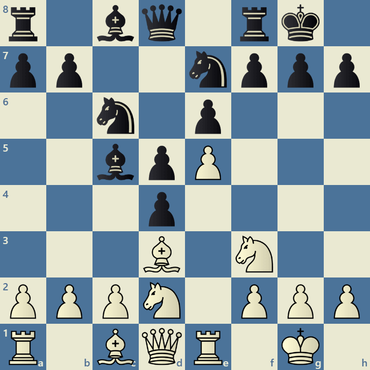 1. e4 e6 2. d4 d5 3. e5 c5 4. Nf3 Nc6 5. Bd3 cxd4 6. O-O Bc5 7. Re1 Nge7 8. Nbd2 O-O?