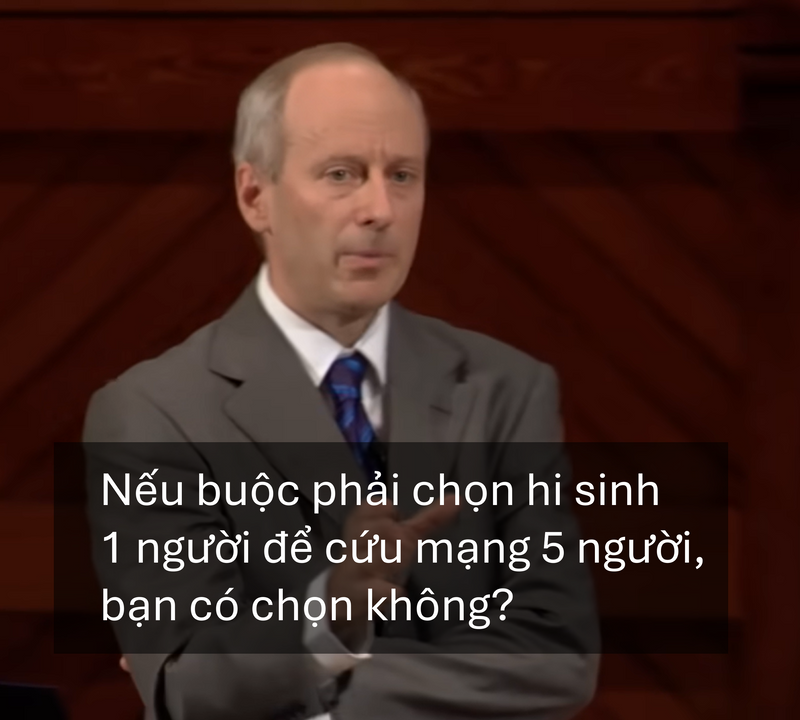 Để bắt đầu bài giảng về chủ đề “Khía cạnh đạo đức của g*ết người” tại đại học Harvard, giáo sư Michael Sandel đã đưa ra một tình huống và kêu gọi ý kiến từ sinh viên: