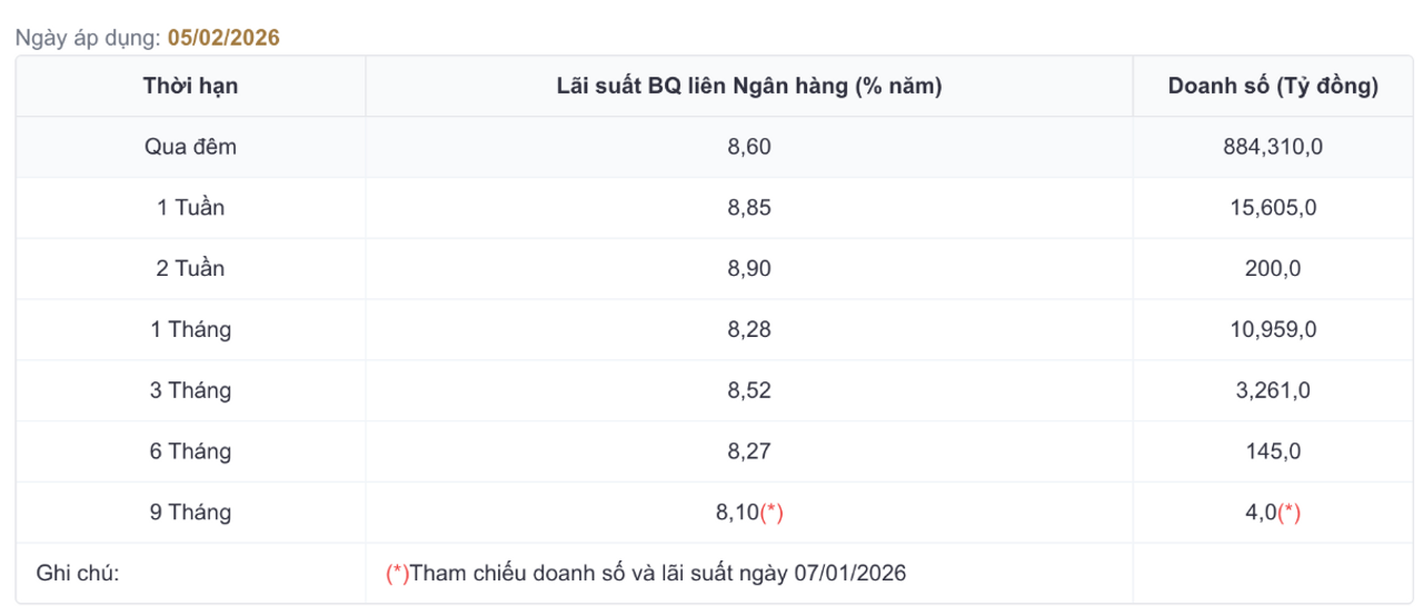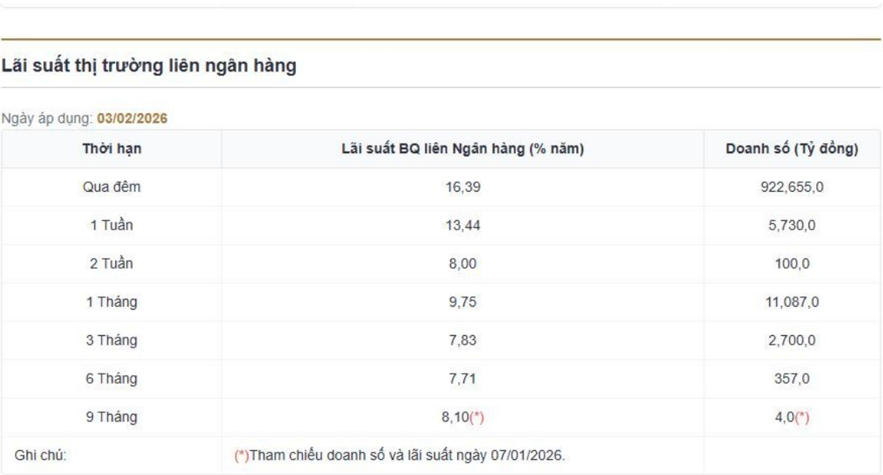 Diễn biến này cho thấy lượng tiền mặt bị rút ra khỏi hệ thống ngân hàng là tương đối lớn, trực tiếp bào mòn dự trữ (Reserve) của các ngân hàng. Khi quy mô dự trữ tiến sát, thậm chí có thời điểm giảm xuống dưới ngưỡng yêu cầu, các ngân hàng gần như không còn nhiều dư địa an toàn để vận hành thanh khoản một cách chủ động. Trong bối cảnh đó, nhu cầu vay vốn ngắn hạn buộc phải gia tăng, thông qua thị trường liên ngân hàng hoặc thậm chí tiếp cận trực tiếp các kênh hỗ trợ từ Ngân hàng Nhà nước.