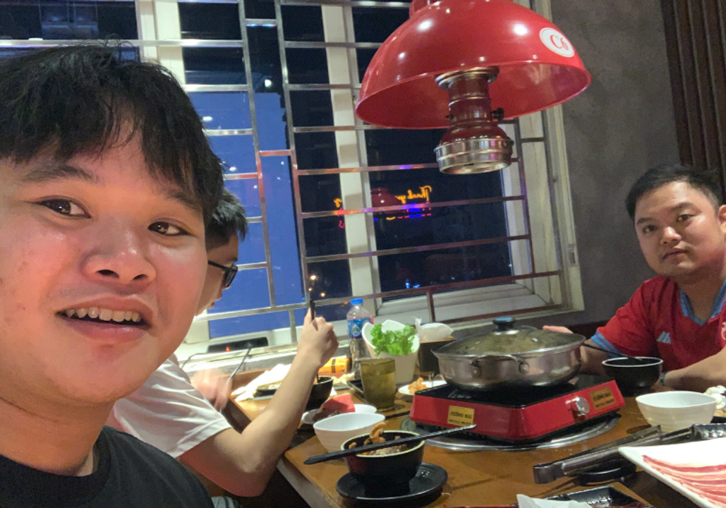 Tôi đi chạy ship tiếp rồi hẹn Đức Anh - tôi phải xuống Đáp Cầu đèo nó lên vì nó không có xe. Chúng tôi ăn ở quán Buffet lẩu nướng ở đường Nguyễn Đăng Đạo sát ngã 6 lúc 19h, nhưng vì quán không có bàn 2 người nên tôi đã gọi thêm Lập béo. Bữa hôm đó 3 anh em ăn uống no nê.